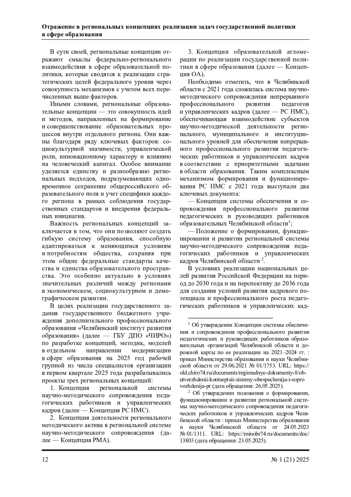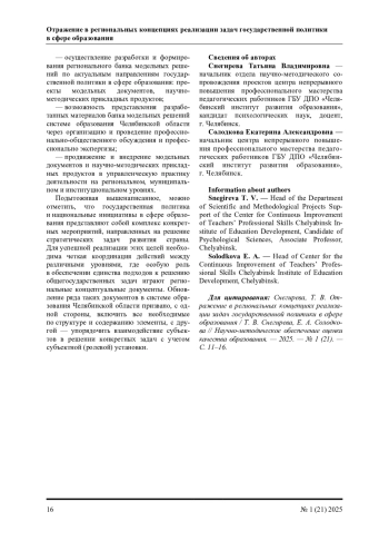 Государственная политика в сфере образования представляет собой совокупность принципов и мер, направленных на развитие системы образования в стране. В статье представлено отражение федеральных задач и цели в аспекте их реализации на уровне отдельного региона (Челябинская область) через актуальные концепции. Механизмы взаимодействия федерального и регионального уровней в сфере образования показывают, как глобальные государственные задачи трансформируются в конкретные региональные решения и практики