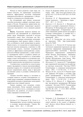 5. Хану О. О. Хедхантинг как метод подбора персонала. URL: http://nauka.kushnir.mk.ua/?p=76892.