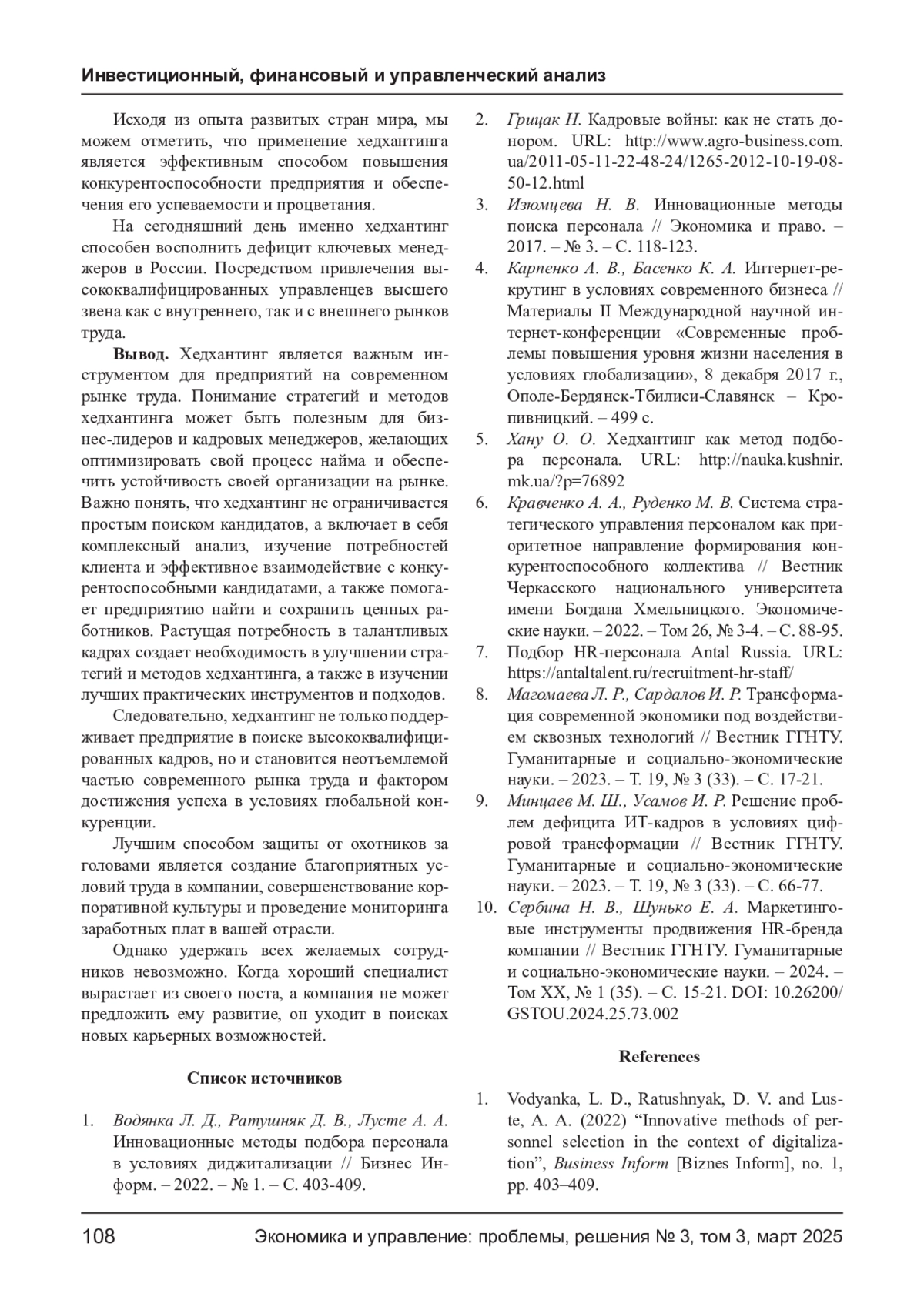 1. Водянка Л. Д., Ратушняк Д. В., Лусте А. А. Инновационные методы подбора персонала в условиях диджитализации // Бизнес Информ. - 2022. - № 1. - С. 403-409. EDN: OJJBPG