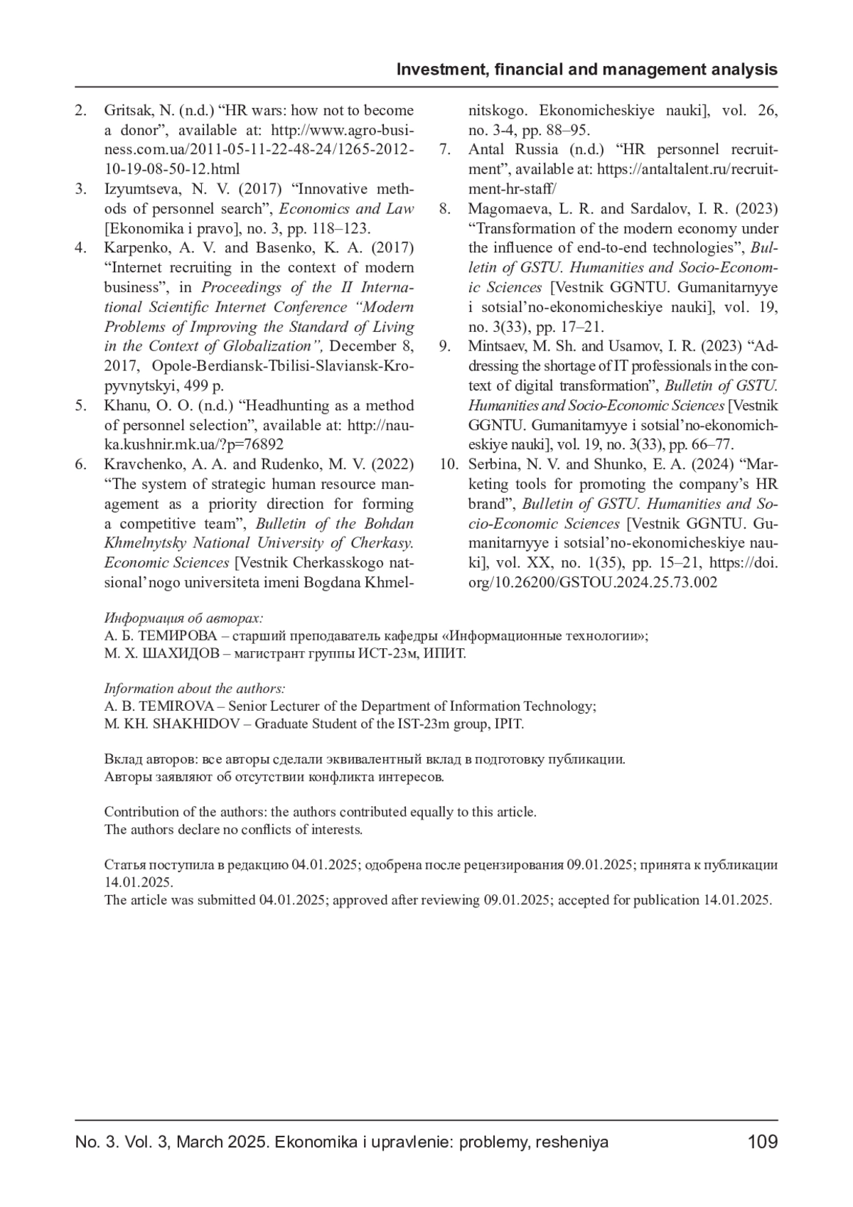 9. Минцаев М. Ш., Усамов И. Р. Решение проблем дефицита ИТ-кадров в условиях цифровой трансформации // Вестник ГГНТУ. Гуманитарные и социально-экономические науки. - 2023. - Т. 19, № 3 (33). - С. 66-77. EDN: OTTXAK