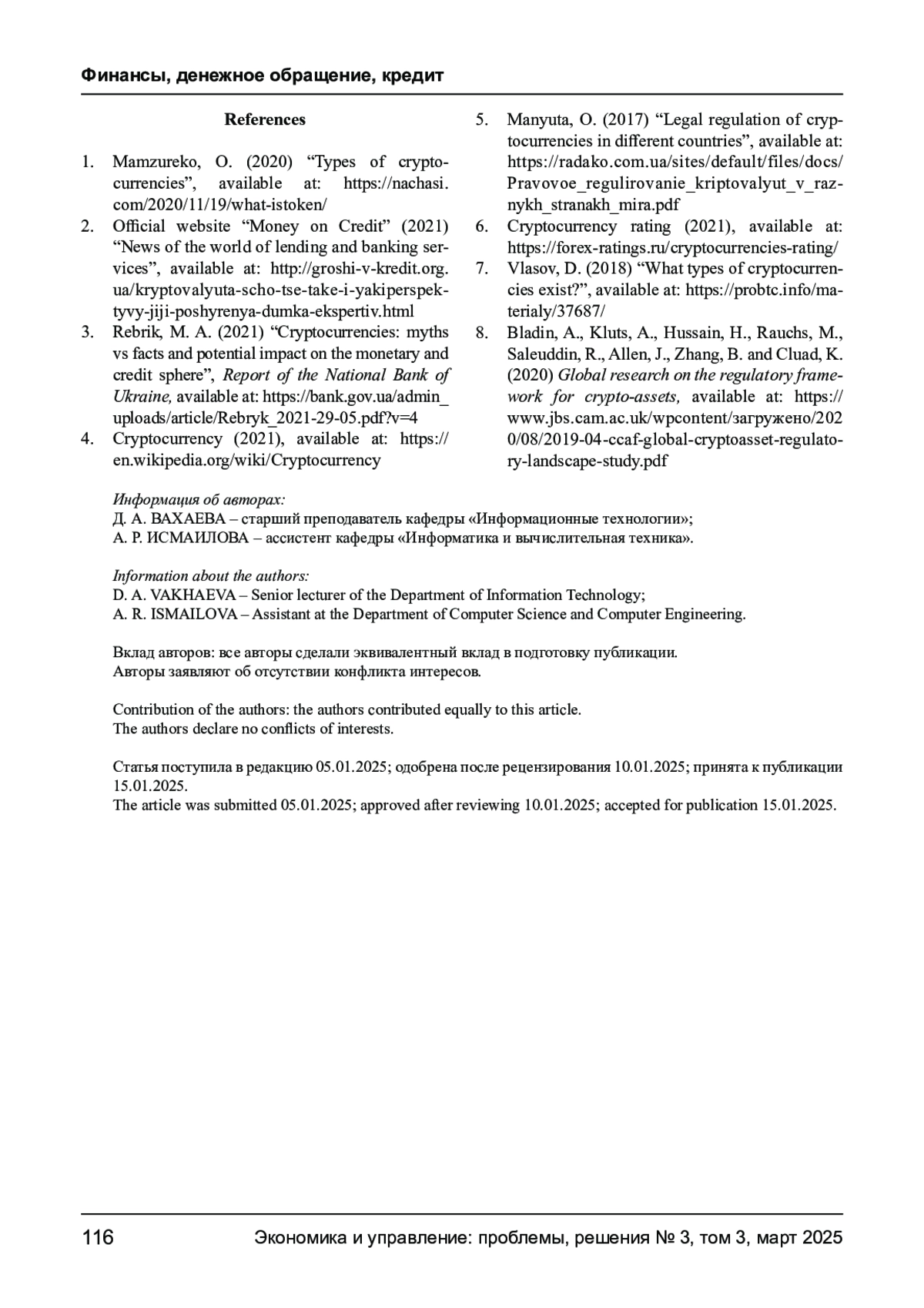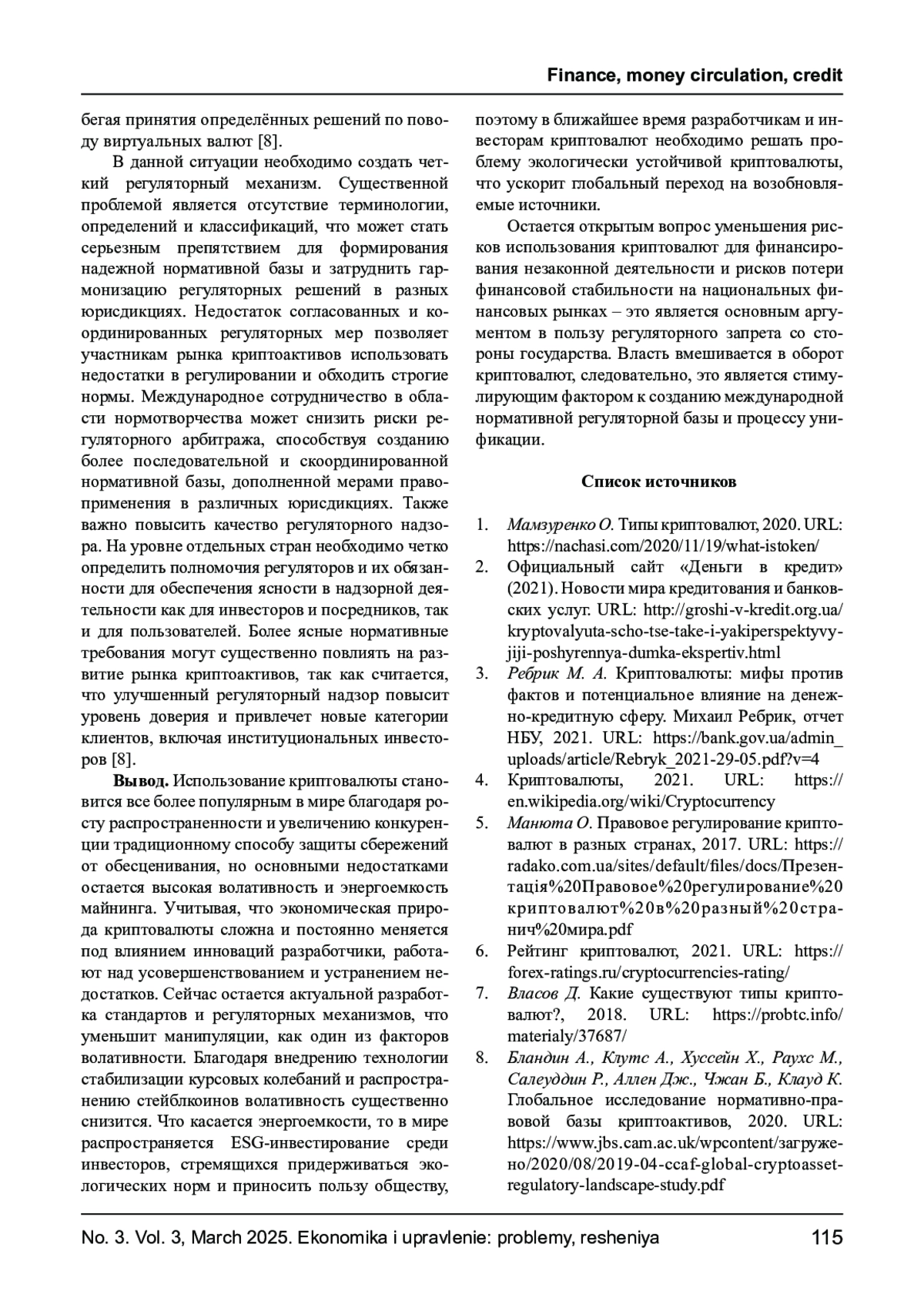 3. Ребрик М. А. Криптовалюты: мифы против фактов и потенциальное влияние на денежно-кредитную сферу. Михаил Ребрик, отчет НБУ, 2021. URL: https://bank.gov.ua/admin_uploads/article/Rebryk_2021-29-05.pdf?v=4.