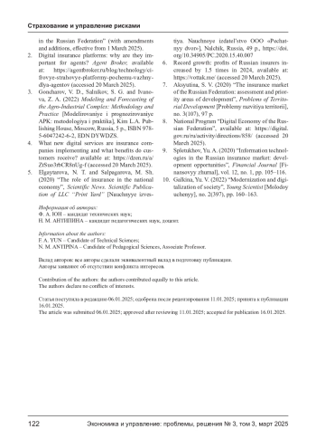 9. Сплетухов Ю. А. Информационные технологии на российском страховом рынке: возможности развития // Финансовый журнал. - 2020. - № 1. - Том 12. - С. 105-116. EDN: YTPAEW