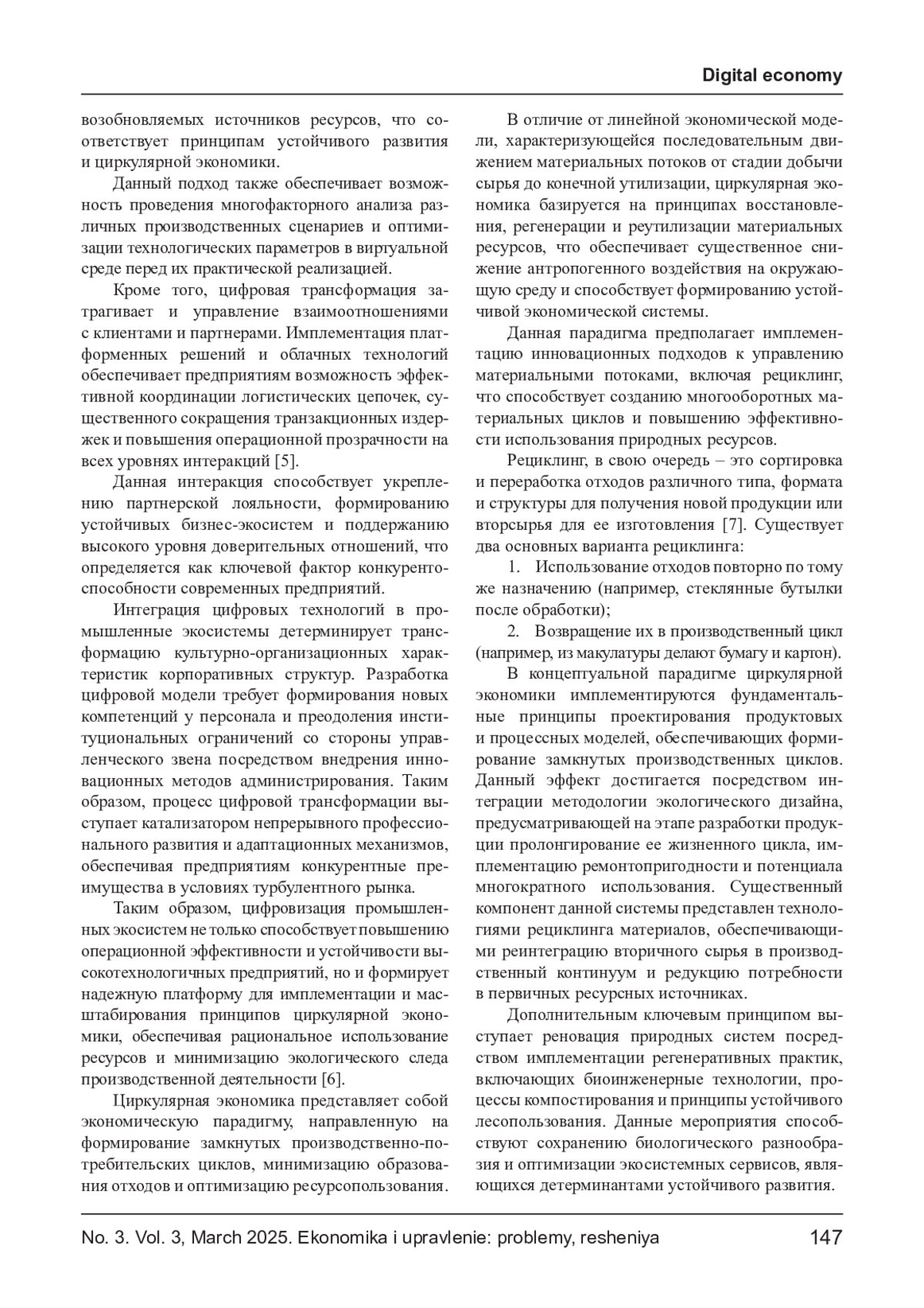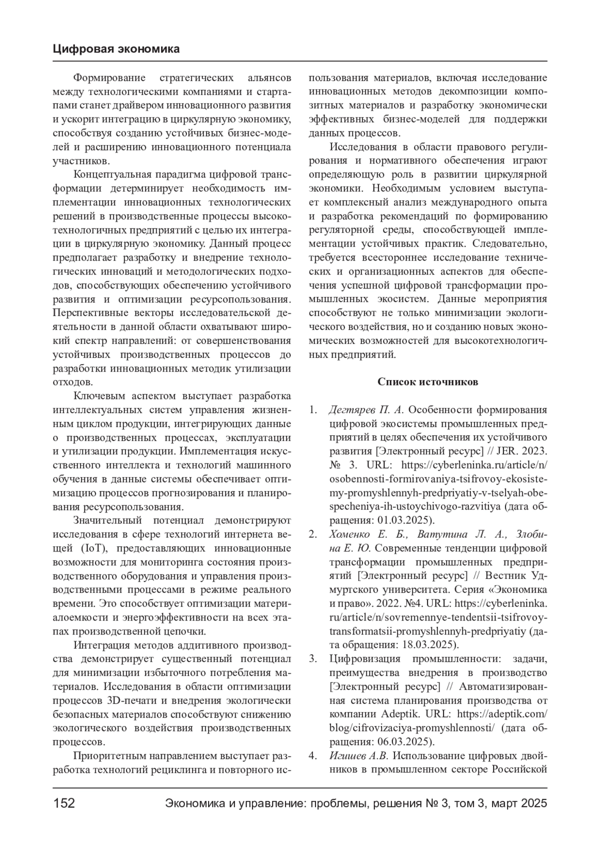 В условиях цифровой трансформации, промышленные предприятия сталкиваются с вызовами и возможностями интеграции в циркулярную экономику, которая ставит перед собой задачи максимизации эффективности использования материалов, сокращения отходов и переосмысления подхода к жизненному циклу производимой продукции.