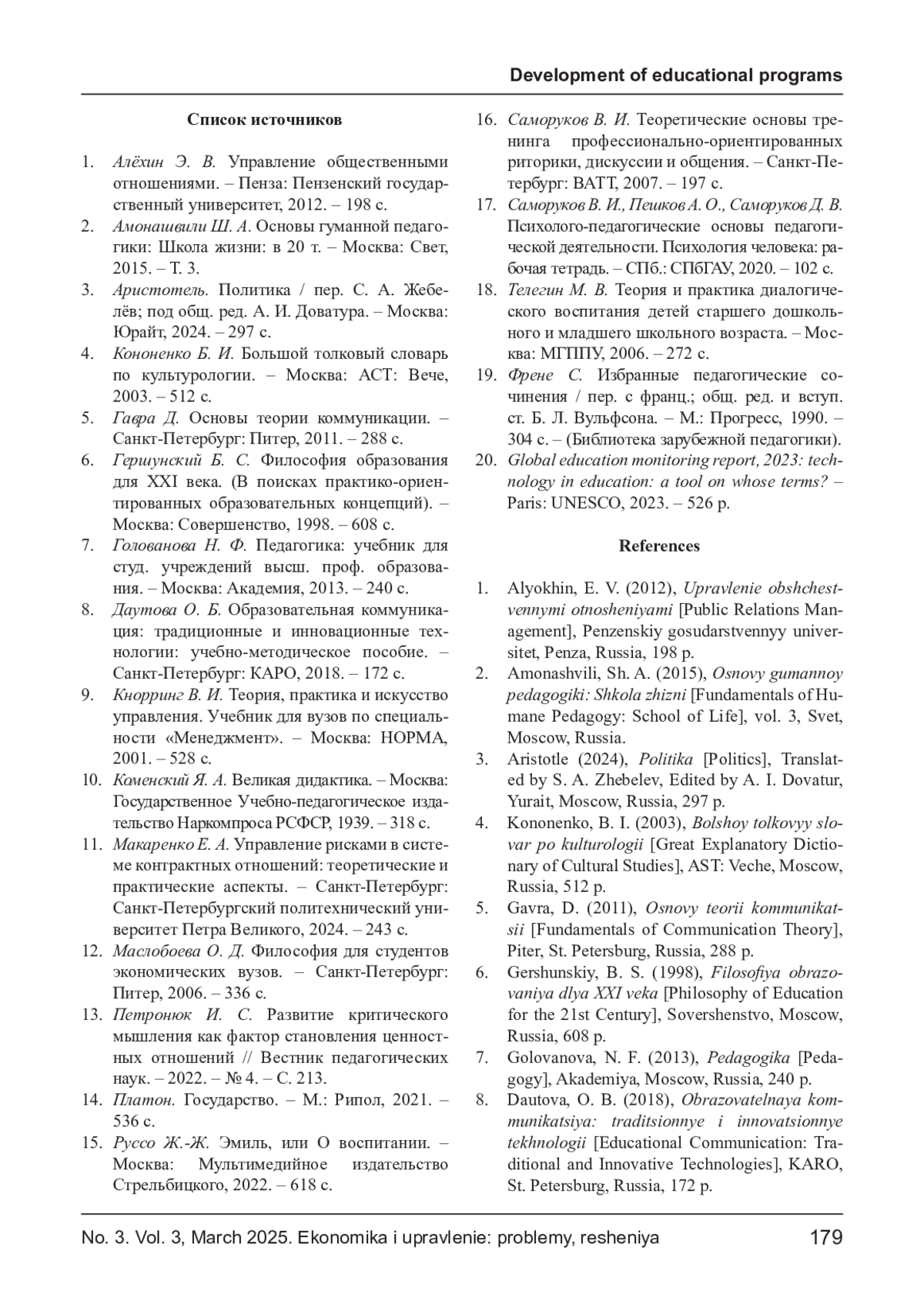 6. Гершунский Б. С. Философия образования для XXI века. (В поисках практико-ориентированных образовательных концепций). - Москва: Совершенство, 1998. - 608 с.