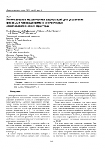 управления электрическими характеристиками сегнетоэлектриков, для решения которой были намечены и частично использованы различные способы управления свойствами и характеристиками сегнетоэлектрических и родственных материалов [2–4].