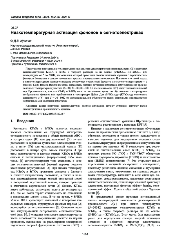 - Д.В. Кузенко. ФТТ 66, 5, 723 (2024)