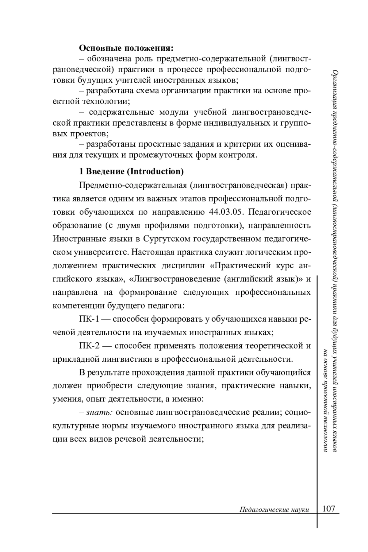 Предметно-содержательная (лингвострановедческая) практика является одним из важных этапов профессиональной подготовки обучающихся по направлению 44.03.05. Педагогическое образование (с двумя профилями подготовки), направленность Иностранные языки в Сургутском государственном педагогическом университете.