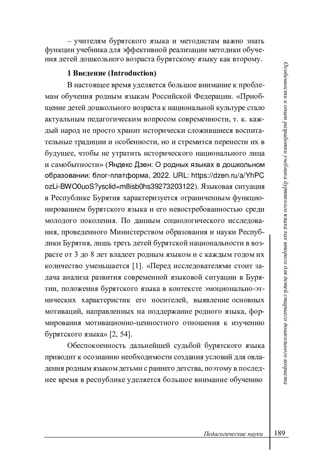 В настоящее время уделяется большое внимание к проблемам обучения родным языкам Российской Федерации. «Приобщение детей дошкольного возраста к национальной культуре стало актуальным педагогическим вопросом современности, т. к. каждый народ не просто хранит исторически сложившиеся воспитательные традиции и особенности, но и стремится перенести их в будущее, чтобы не утратить исторического национального лица и самобытности» (Яндекс Дзен: О родных языках в дошкольном образовании: блог-платформа, 2022. URL: https://dzen. ru/a/YhPC ozLi-BWO0uoS? ysclid=m8isb0hs39273203122).