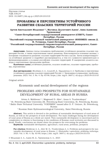 Данная статья посвящена проблематике устойчивого развития сельских территорий России, а также перспективам такого развития. Констатируются основные вызовы, с которыми сталкивается развитие сельских территорий России в целом. Затем конкретизируется устойчивое развитие и подробнее рассматривается, в чем его сложности применительно к функционированию в условиях российских сельских территорий. В завершение делаются выводы о перспективах преодоления проблем.