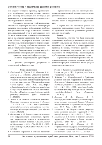 3. Овчинников А. Н. Развитие сельской социальной инфраструктуры: актуальность проблемы, теоретические основы и экономическая сущность базовых понятий // Russian Journal of Management. - 2023. - Том 11, № 3. -. DOI: 10.29039/2409-6024-2023-11-3307-318 EDN: XGZACO