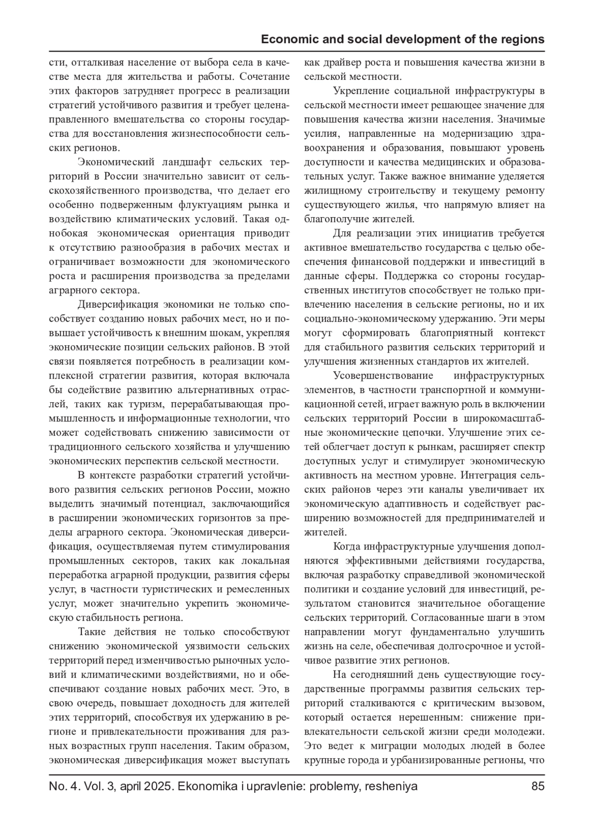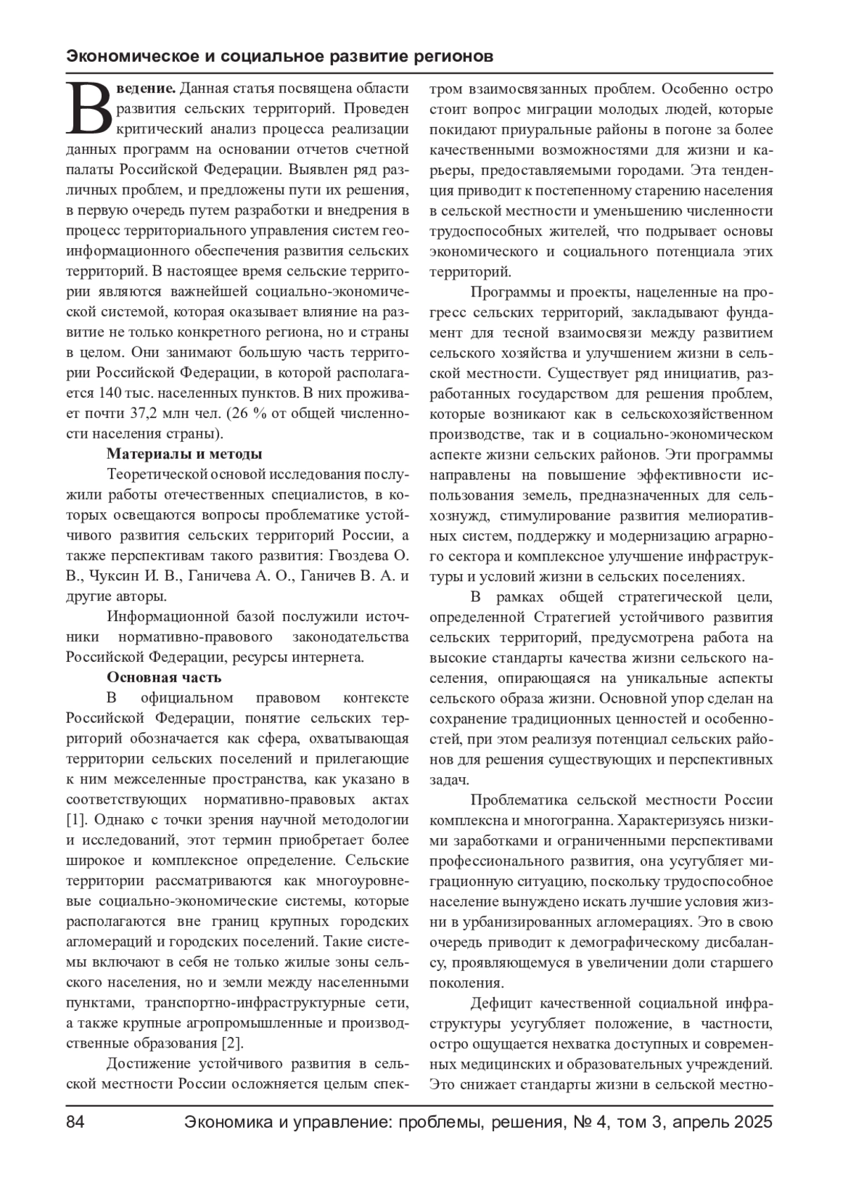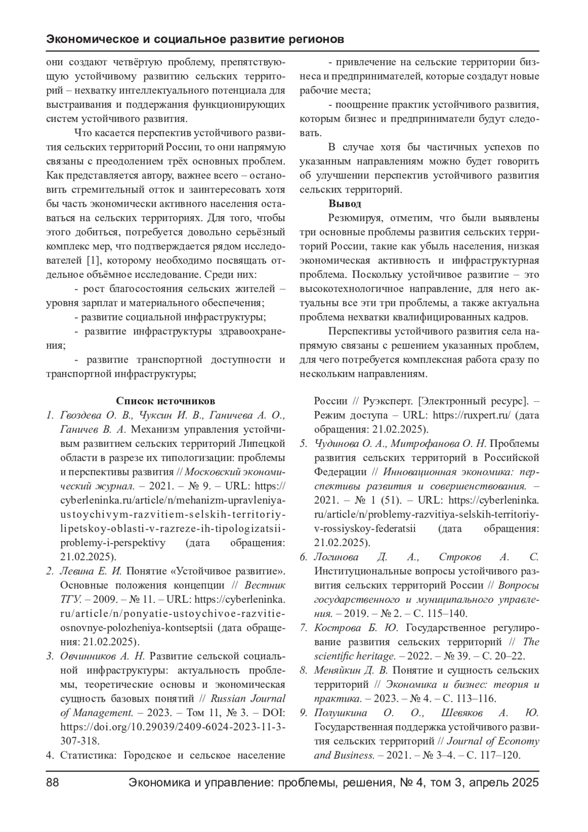 5. Чудинова О. А., Митрофанова О. Н. Проблемы развития сельских территорий в Российской Федерации // Инновационная экономика: перспективы развития и совершенствования. - 2021. - № 1 (51). - URL: https://cyberleninka.ru/article/n/problemy-razvitiya-selskih-territoriyv-rossiyskoy-federatsii (дата обращения: 21.02.2025). EDN: DCOBOL