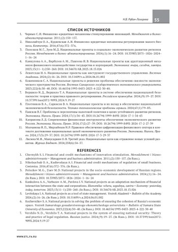 5. Левитская И. А. Национальные проекты как инструмент государственного управления. Вестник Академии. 2024;(2):16-26. DOI: 10.51409/v.a.2024.06.01.002