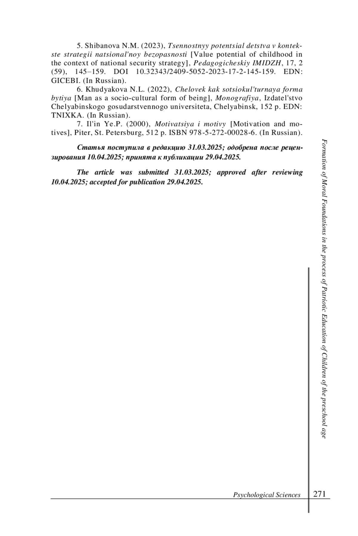 Статья: ФОРМИРОВАНИЕ НРАВСТВЕННЫХ ОСНОВ В ПРОЦЕССЕ ПАТРИОТИЧЕСКОГО ВОСПИТАНИЯ ДЕТЕЙ ДОШКОЛЬНОГО ВОЗРАСТА (2025)