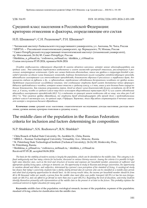 Баландина А.И., Хам В.В. Средний класс в современной России [Электронный ресурс]. URL: https://cyberleninka.ru/article/n/sredniy-klass-v-sovremennoy-rossii-1/viewer (дата обращения: 10.03.2024). -