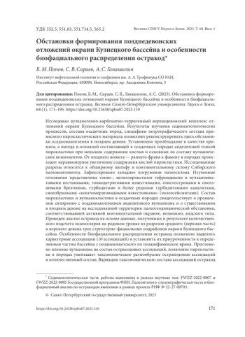 Сараев, С. В. и Ганашилин, А. С. (2022). Седиментология и геохимия верхнедевонских отложений юго-восточного обрамления Западно-Сибирской геосинеклизы. Геология и геофизика, 63 (5), 655-672. EDN: CUNZCN -