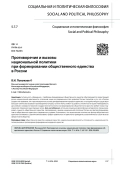 Актуальность обращения к проблемам формирования общественного единства обуславливается возрастающей ролью национальной идентичности, сплочения нации на современном этапе развития России. Несмотря на то, что в России созданы как правовые, так и организационные основы для формирования народного единства, на сегодняшний день существует большое количество вызовов и противоречий, которые, так или иначе, влияют на уровень сплоченности нации. Необходимость дальнейшего совершенствования государственной политики при формировании общественного единства требует новых подходов для отражения существующих угроз. Цель исследования: используя социально-философскую методологию проанализировать сущность общественного единства, противоречия и вызовы национальной политики России как фактора формирования ее общественного единства в современных условиях. Установлено, что национальная политика как фактор общественного единства сталкиваясь с различными вызовами, требует правильного и грамотного проведения, осознания места и роли во всех сферах жизни общества.