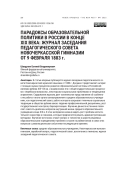 В статье впервые публикуется журнал заседания педагогического совета Новочеркасской мужской гимназии от 1883 г. Документ представляет интерес с позиции оценки процессов развития образовательной системы в Российской империи рубежа XIX–XX вв. и взаимосвязи его с общегосударственными процессами: «еврейским вопросом», некоторыми социальными проблемами и тенденциями управления. Содержание журнала дает комплексное представление об особенностях работы такого органа самоуправления в средних образовательных учреждениях, как педагогический совет, работа которого вскрывает типичные социальные тенденции в обществе рубежа веков: падение профессиональной дисциплины, рост государственного контроля, бюрократизация. Изучение данного источника позволяет охватить диапазон вопросов внутренней жизни среднего образовательного учреждения конца XIX в. В этих материалах можно видеть рост проблем воспитательного характера в гимназии, которые предлагается решать административными методами. Изучение источника ставит вопрос о типологии и широте решаемых образовательными учреждениями проблем в стране на рубеже веков и связи этих вопросов с революционными событиями последующего времени