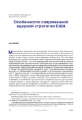 В статье раскрываются особенности ядерной стратегии США в XXI в. Анализируются её концептуальные изменения за последние годы, уточняются основные составляющие модернизации ядерной триады. Особое внимание уделяется отработке применения США ядерного оружия в ходе военных учений.