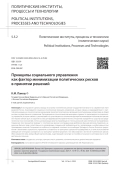Предметом рассмотрения в настоящей статье является институциональный подход в исследовании политических рисков и его обоснование в контексте развития государственных институтов. Отмечается, что момент восприимчивости общества к рискам порождается внутри общества, таким образом являясь непосредственным результатом социальной практики. Выделены факторы, которые определяют диапазон возможностей политической власти по осуществлению регулятивной деятельности. Автором обосновывается связь между обществом и институтами государственного управления. Интеграция управленческих функций основных государственных институтов связана с обеспечением эффективности управления в условиях, когда факторы политического риска входят в область ответственности различных ведомств, либо речь идет о системных рисках, связанных с рассогласованием различных подсистем общества. На уровне действующих социально-политических институтов интеграция органов власти для противостояния значимым факторам риска реализуется в рамках создания специальных функциональных институтов - координационных центров, включающих в себя представителей органов власти, объединение усилий которых необходимо для урегулирования возникшей острой проблемы. Делается вывод о необходимости создания благоприятных условий для организации «горизонтального» взаимодействия различных органов власти и вне структуры координационных центров, которые не могут быть организованы для каждой конкретной проблемы.