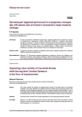 В статье рассмотрены особенности организации трудовой деятельности осужденных женщин в исправительных учреждениях. Автором обозначены проблемы, с которыми сталкивались осужденные женщины в период становления пенитенциарного законодательства. Использование общенаучных, частнонаучных, а также частноправовых методов исследования позволило отследить изменения статуса женщин как трудовых единиц и сделать вывод о значительном продвижении уголовно-исполнительной политики в направлении гуманизации.
