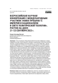 ВСЕРОССИЙСКАЯ НАУЧНАЯ КОНФЕРЕНЦИЯ С МЕЖДУНАРОДНЫМ УЧАСТИЕМ "НОВОЕ ПРОШЛОЕ-5: ИМПЕРИЯ И НАЦИОНАЛИЗМ В СВЕТЕ ПОЛИТИЧЕСКОЙ ТЕОЛОГИИ". РОСТОВ-НА-ДОНУ, 21-23 СЕНТЯБРЯ 2023 Г (2024)