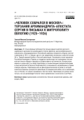 В статье впервые публикуются письма видного деятеля русского зарубежного духовенства архимандрита Сергия (Дабича), высокообразованного священника, командированного Российской церковью окормлять общину соотечественников в 1914 г. в Греции, где он стал свидетелем эпохальных событий начала ХХ в.: Первой мировой войны и Русской революции. Оказавшись после крушения Российской империи в Париже, он поддался пропаганде так называемых католиков восточного обряда и перешел из православия в католичество. Вскоре раскаявшись в своем шаге, он повел переговоры со своим бывшим священноначалием в лице митрополита Евлогия (Георгиевского) о возможности возвращения в Православную церковь. Переговоры шли на фоне драматической ситуации, в которой оказалась Церковь в результате революции и Гражданской войны, как в эмиграции, так и в России, что нашло отражение в текстах писем. Переговоры не успели закончиться, так как архимандрит-апостат впал в депрессию и скончался в Сан-Ремо