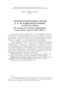 В статье проанализирован генезис автобиографических очерков «У старого Пимена», «С. А. Муромцев (к годовщине открытия первой Думы)», «Москвичи», «Завещание», показана их связь с неопубликованной автобиографией писательницы и дневниками, где фиксировались определенные идеи, отзывы современников и душевные переживания, отразившиеся на очерках. Для Веры Николаевны автобиографические очерки напрямую связаны с личными переживаниями и душевным кризисом.