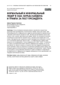 Статья посвящена изучению вопроса о различиях в сущностных характеристиках руководителя и политического лидера страны или партии. Проблема формального и неформального лидерства рассматривается применительно к реалиям политического процесса в США. Автором рассматривается некая совокупность черт, в целом характерных для лидера. Кроме того, выявляются влияния и особенности политического процесса XXI в., внесшего свои коррективы в этот список. Фиксируется роль социальных сетей в президентских компаниях, в частности в становлении Дональда Трампа в 2016 г. из неформального лидера в формального и его возвращении к статусу неформального в 2021–2024 гг. Отмечается, что Трамп на сегодняшний момент является неформальным лидером, так как не возглавляет ни страну, ни партию, но является при этом лидером оппозиционной части населения. Автор на конкретных исторических примерах делает вывод о преобладании демагогической риторики в президентской кампании Д. Трампа. Важной частью работы стало выявление зависимости Трампа и Байдена от окружающих как формального и неформального лидеров, являвшихся в итоге заложниками, а не творцами политической системы