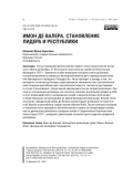 Статья посвящена рассмотрению первого этапа политической активности Имона де Валеры, от Пасхального восстания до принятия Конституции Ирландии в 1937 г. Уделяется особое внимание позициям и роли де Валеры в разнонаправленных процессах Ирландской революции и периода существования Ирландского Свободного Государства. Автор приходит к выводу о том, что риторика и политика де Валеры характеризуется неизменностью стратегической цели создания республики при относительной гибкости тактики ее достижения в случае столкновения с объективной невозможностью ее скорой реализации. При этом на становление де Валеры как политика повлияла длительная поездка в США и опыт взаимодействия и налаживания связей с американскими политиками и общественными организациями во время Ирландской революции. Вскоре после окончания гражданской войны де Валера концентрирует внимание на политической борьбе за республику, создав партию Фианна Фойл. После успешных выборов и получения поста президента Исполнительного совета он концентрирует внимание на демонтаже доминиона и разрыве связей с Соединенным Королевством. Конституция 1937 г. завершает реализацию основной цели создания суверенной республики