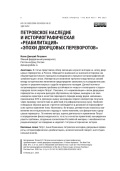 В статье представлен обзор эволюции научного взгляда на «эпоху дворцовых переворотов» в России. Обращается внимание на значение историзма как общеметодологического принципа исследования в процессе историографической «реабилитации» эпохи. Императив установления причинно-следственных связей между историческими явлениями предопределил зависимость исследовательских оценок от решения вопроса о судьбе петровского наследия. Данный контекст актуализировал изучение проблемы устойчивости «новых» и потенциала «старых» порядков после смерти Петра I. Показано, что «нормализация» «эпохи дворцовых переворотов» в научном дискурсе обусловлена, во-первых, выводом о ее закономерном характере в качестве переходного периода между двумя «великими» правлениями XVIII в. Должную оценку наследники первого императора получали через проверку соответствия их действий его реформаторскому курсу. Наиболее очевидным образом данная стратегия наблюдается в динамике историографических оценок правления Анны Иоанновны. Во-вторых, релевантным оказалось применение институционального подхода к таким явлениям, как фаворитизм и дворцовые перевороты. По мнению автора, оценка деятельности преемников Петра I в определенном фокусе модальности, то есть в качестве правителей, вынужденных решать проблемы, созданные основателем Российской империи, с неизбежностью рационализирует их поведение и наделяет статусом исторических акторов