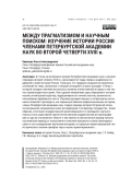 В статье на материалах архива Петербургской академии наук и научной периодики второй четверти XVIII в. анализируются труды первых академиков по древней и новой истории России. Показано, что традиция создания исторических сочинений на темы, связанные с текущей ситуацией в стране, восходит к Петру I, который поощрял изучение актуальных сюжетов отечественной истории, в том числе в пропагандистских целях. Как и другие инициативы царя, обращение к истории носило утилитарный характер, подразумевало его личное участие, включало использование зарубежного опыта. Изучение документальных и литературных источников позволяет проследить, как первые российские профессиональные историки, члены Петербургской академии наук, следуя примеру авторов Петровской эпохи, согласовывали направления своих исследований с интересами государства. Таким образом, сочетание государственной целесообразности и свободного научного поиска стало характерной чертой отечественной академической историографии уже в годы ее становления. Вместе с тем именно в обозначенный период начался постепенный переход от осмысления и описания прошлого в сугубо прикладных целях к его исследованию научными методами, и социально ориентированный тип исторического знания приобрел черты научно ориентированного