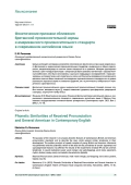 Целью настоящего исследования является сопоставление фонетических признаков современного британского и американского произносительных стандартов и выявление их общих характеристик, свидетельствующих о наличии схожих тенденций в их развитии. Методом аудиторского анализа в речи молодых британцев и американцев были выявлены сегментные и супрасегментные особенности. Они были сопоставлены с данными предыдущих исследователей и проанализированы на предмет взаимного сходства или различия. Результаты проведенного эксперимента доказали наличие общих тенденций в исследуемых произносительных стандартах как на уровне реализации отдельных звуков и словесного ударения, так и в ритмических, тембральных и мелодических характеристиках.