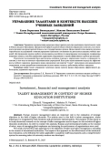 Управление человеческими ресурсами играет важную роль при реализации стратегических задач в области высшего образования. Приоритетной сферой в данной области является управление талантами, чью значимость признают как представители бизнеса, так и государственных органов. Целью данной статьи является изучение теоретических исследований о понятии управления талантами и его влиянии на деятельность высших учебных заведений. Для проведения анализа в работе использовались российские и международные исследования, посвященные концепции таланта, способам управления одаренными сотрудниками и оценке эффективности работы организаций.