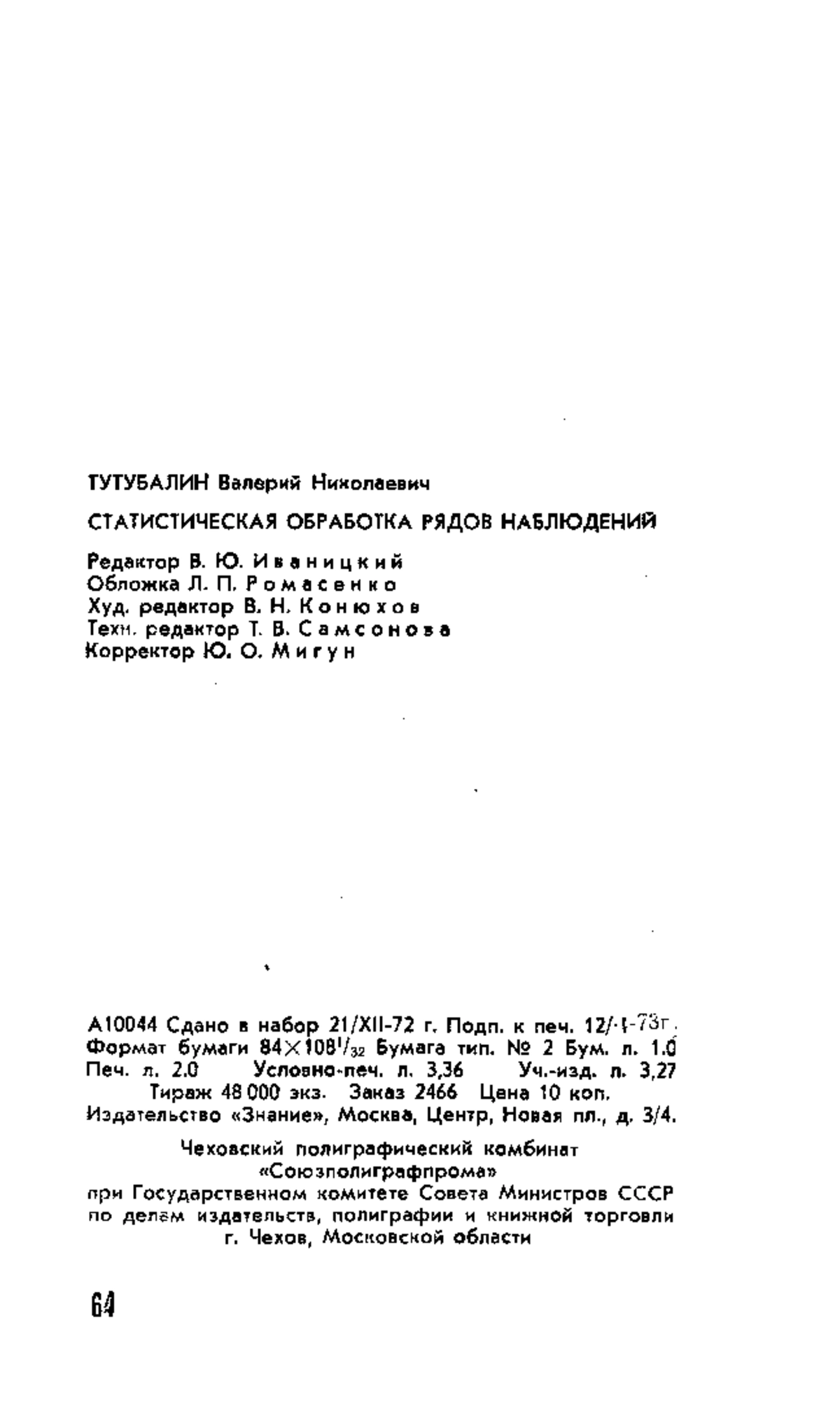 В брошюре рассмотрены методы обработки рядов наблюдений (метод наименьших квадратов и методы теории случайных процессов) и критически оцениваются возможности их использования.