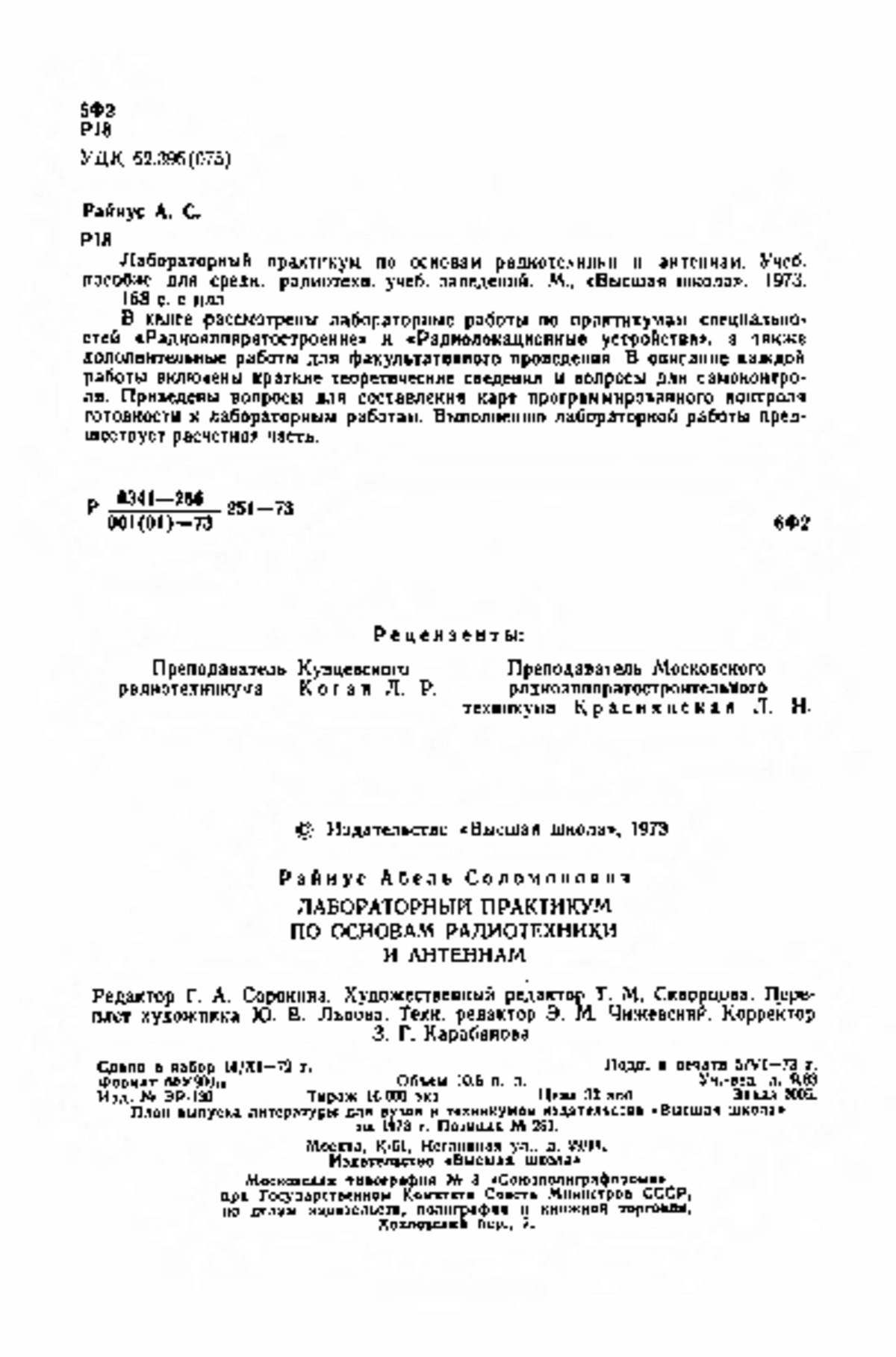 Книга: Лабораторный практикум по основам радиотехники и антеннам