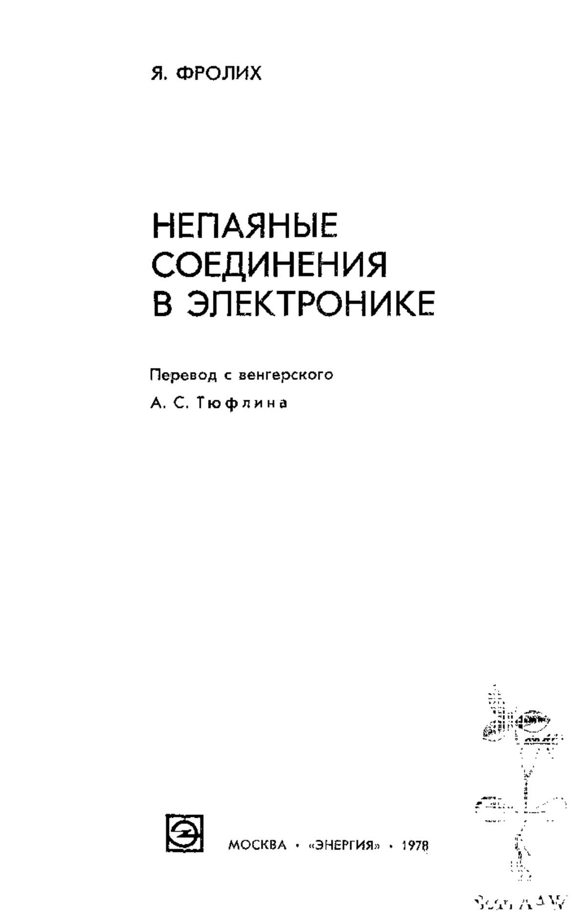 В книге рассмотрены типы и методы непаяных соединений от классических (скручивание, зажим, соединение заклепками) до современных (обжатие, накрутка), которые недостаточно освещены в отечественной литературе. Кроме того, в книге приведено краткое изложение теории образования непаяного соединения. Наиболее подробно автор рассматривает методы обжатия и накрутки, которые в настоящее время находят очень широкое применение в зарубежной электронике. Книга рассчитана на инженерно-технических работников, занимающихся монтажом электрической и электронной аппаратуры.
