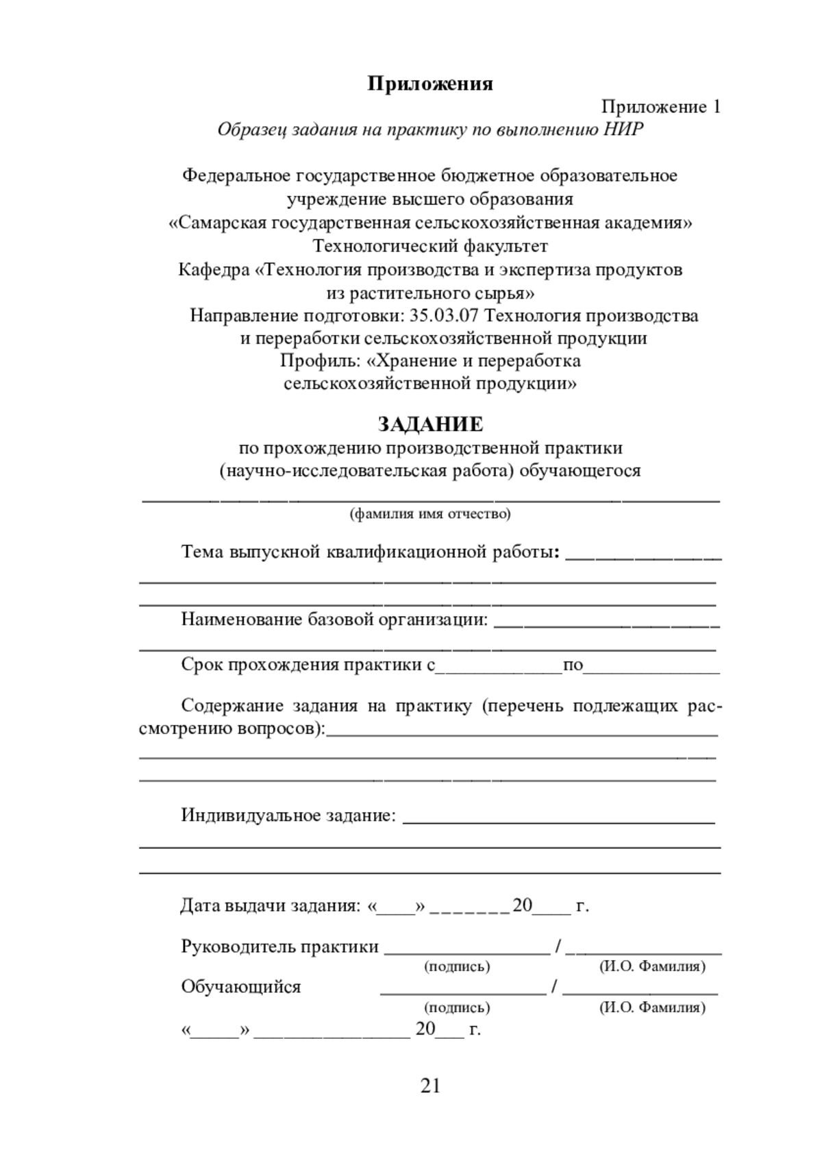 Методические указания предназначены для обучающихся по направлению 35.03.07 Технология производства и переработки сельскохозяйственной продукции (профиль «Хранение и переработка сельскохозяйственной продукции»), преподавателей и специалистов, занятых организацией и проведением производственной практики (научно-исследовательская работа).