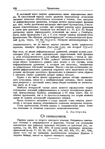 Книга Куранта-Гильберта «Методы математической физики» еще до своего появления на русском языке приобрела заслуженную популярность среди советских математиков и физиков. Ее выход в свет у нас является ценным вкладом в нашу математическую культуру.