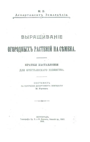 Книга: Выращивание огородных растений на семена. Краткие наставления для крестьянского хозяйства