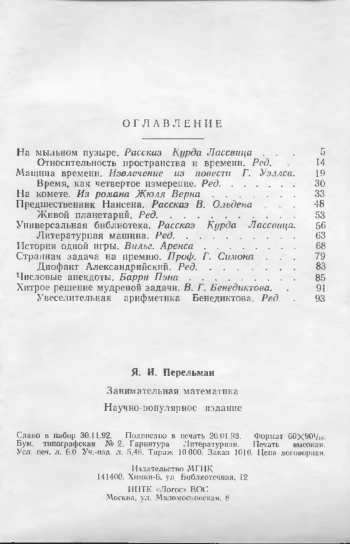 Однако, затрагиваемые в нем математические темы все же довольно разнообразны: относительность пространства и времени, четырехмерный мир, расчеты из области небесной механики, вопросы математической географии, комбинаторика и исполинские числа, приложения математического анализа к играм, неопределенность и анализ, уравнения. Можно надеяться, что этот небольшой сборник натолкнет иных читателей на более серьезные размышления и побудит к систематическому ознакомлению с тем или иным отделом математики.