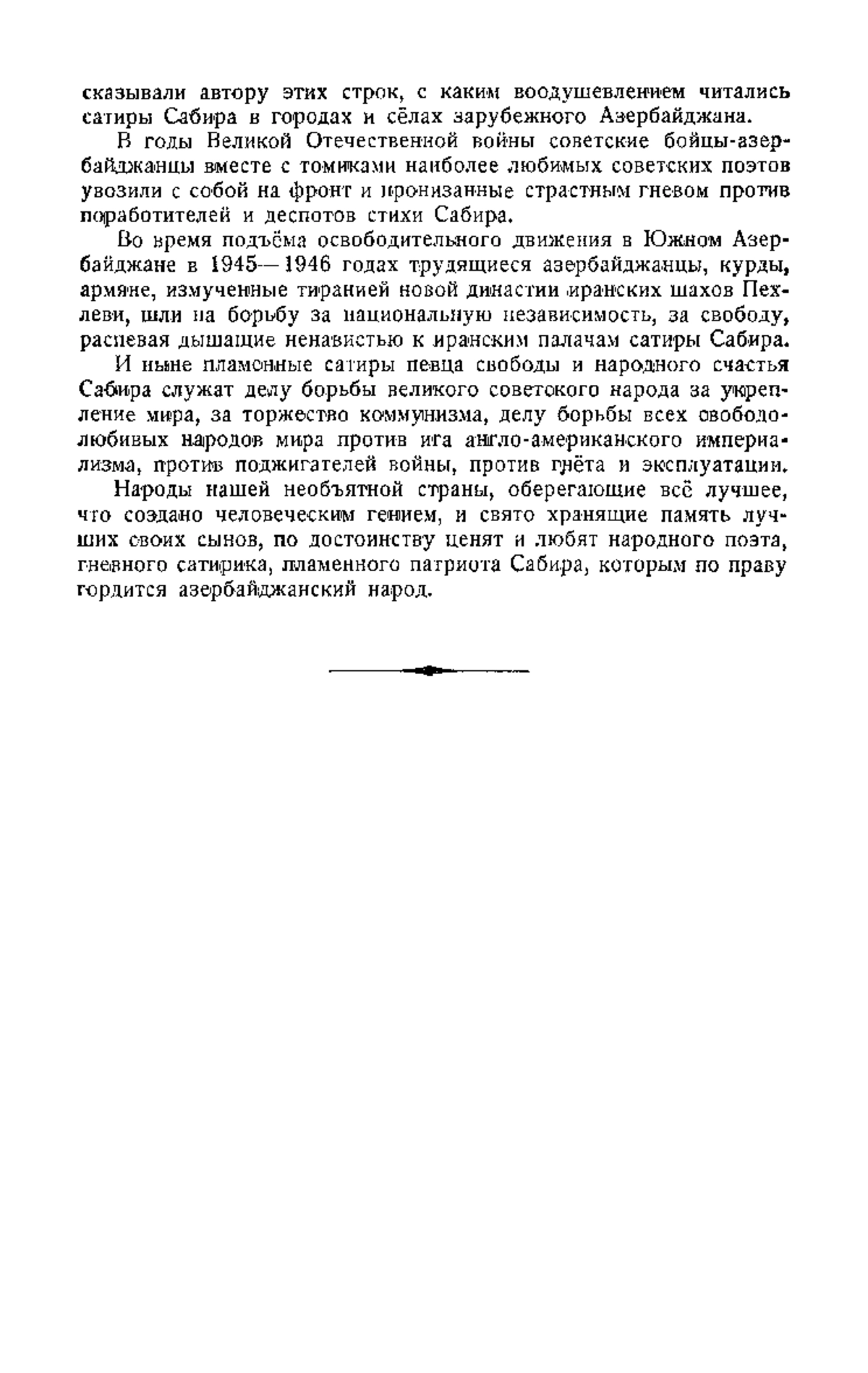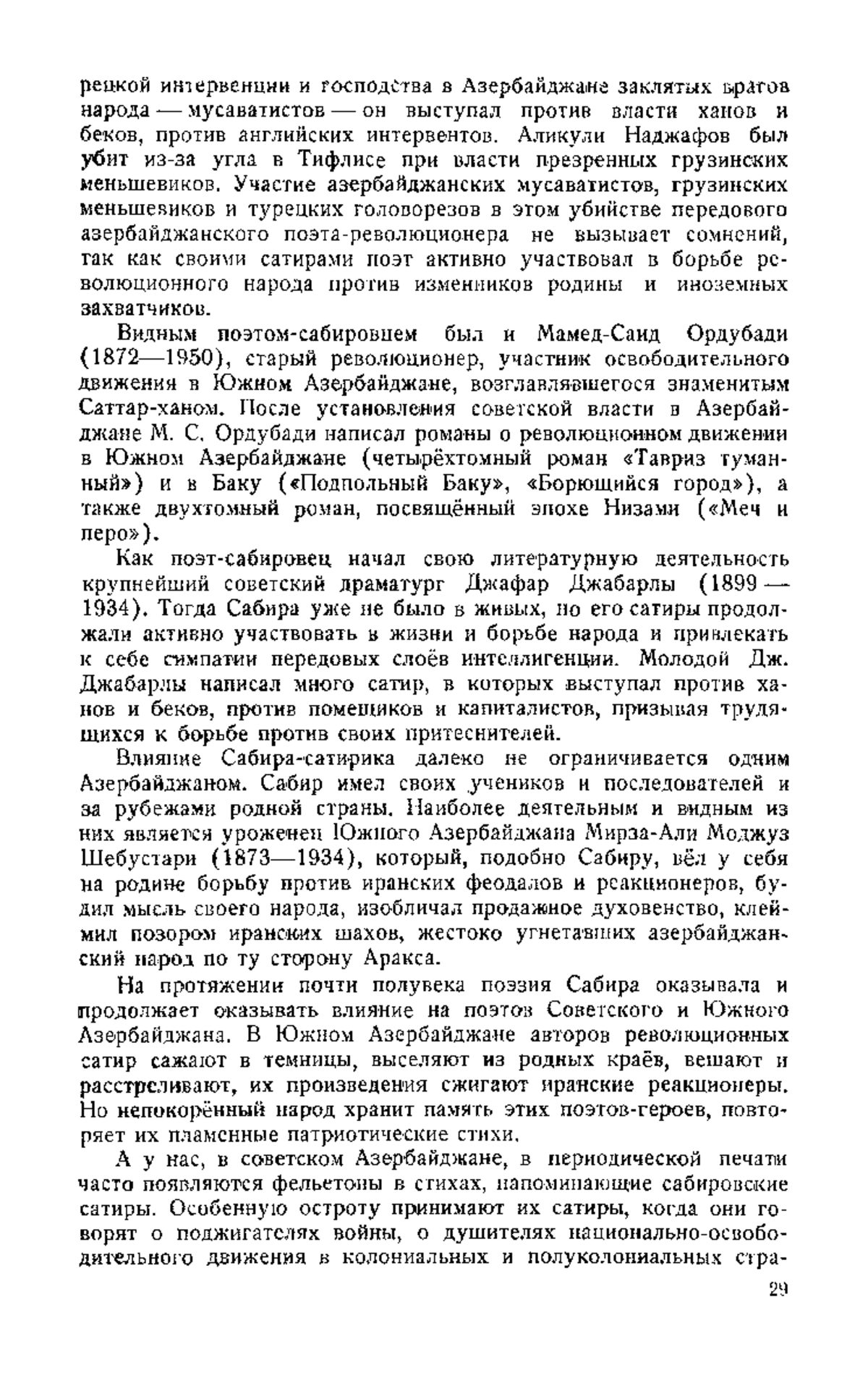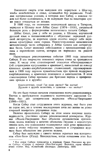 «Среди выдающихся представителей азербайджанской дореволюционной литературы особое место, как поэт-сатирик, поэт-гражданин, революционный поэт, занимает Мирза-Алекбер Таирзаде, известный под псевдонимом Сабир (Терпеливый). Сабир как поэт-сатирик определился в период русской революции 1905 года и, примкнув к революционно-демократическому течению в азербайджанской литературе, стал одним из передовых его деятелей…»
