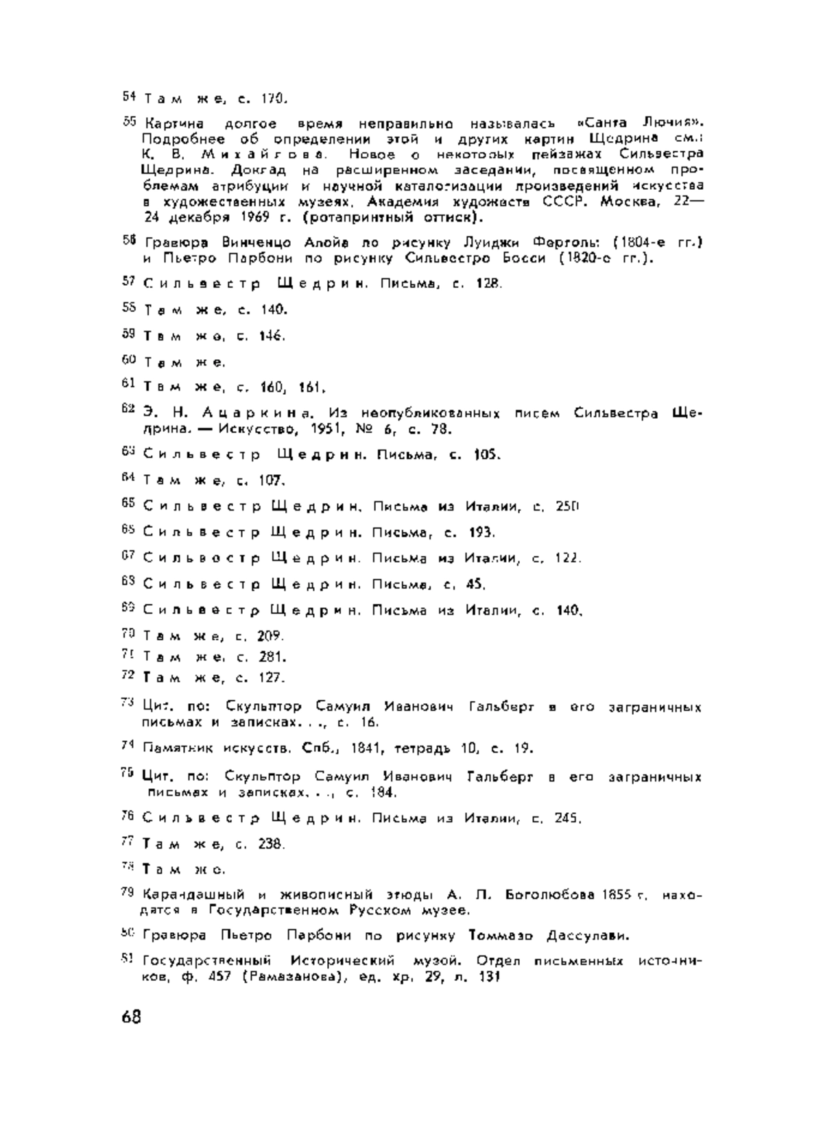 «…Искусство Щедрина широко известно. Его картины с успехом показываются на русских и зарубежных выставках, постоянно репродуцируются. О художнике написаны статьи и монографии, ему посвящены главы в больших исследованиях по русскому искусству, его письма опубликованы. И все же творчество Щедрина недостаточно изучено. До сих пор почти не выявлены его работы, оставшиеся за границей, а некоторые известнейшие картины художника, хранящиеся в музеях Советского Союза, многие годы живут с неправильными наименованиями…»