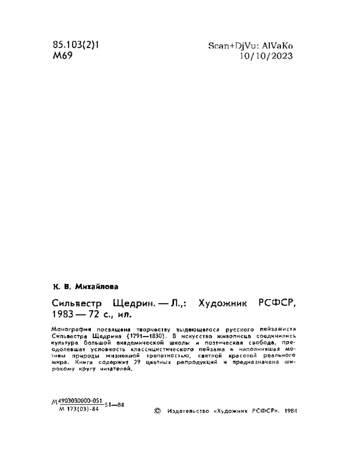 Книга: Массовая библиотека по искусству. Сильвестр Феодосиевич Щедрин