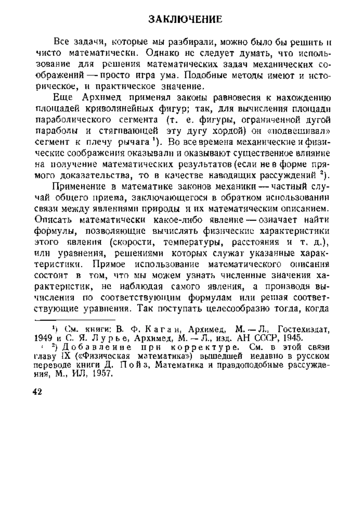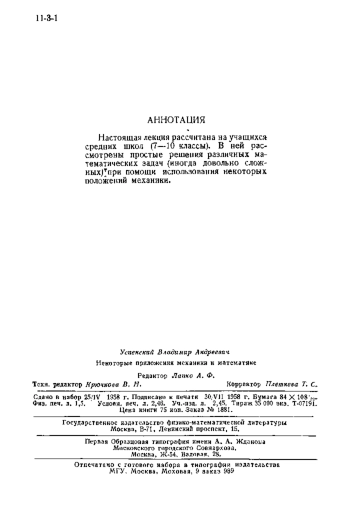 В ней рассмотрены простые решения различных математических задач (иногда довольно сложных) при помощи использования некоторых положений механики.