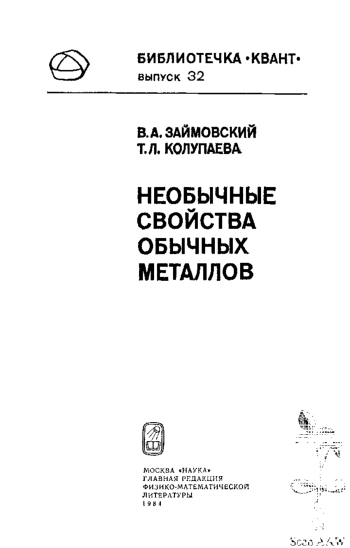 Необычные свойства обычных металлов /Под ред. Л. Г. Асламазова.—М.: Наука. Главная редакция физико-математической литературы, 1984.—192 с.—(Библиотечка «Квант». Вып. 32).—30 к.