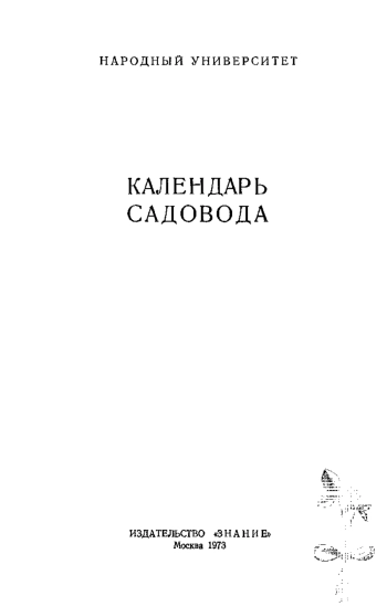 Книга: Народный университет. Сельскохозяйственный факультет. 1973. Календарь садовода