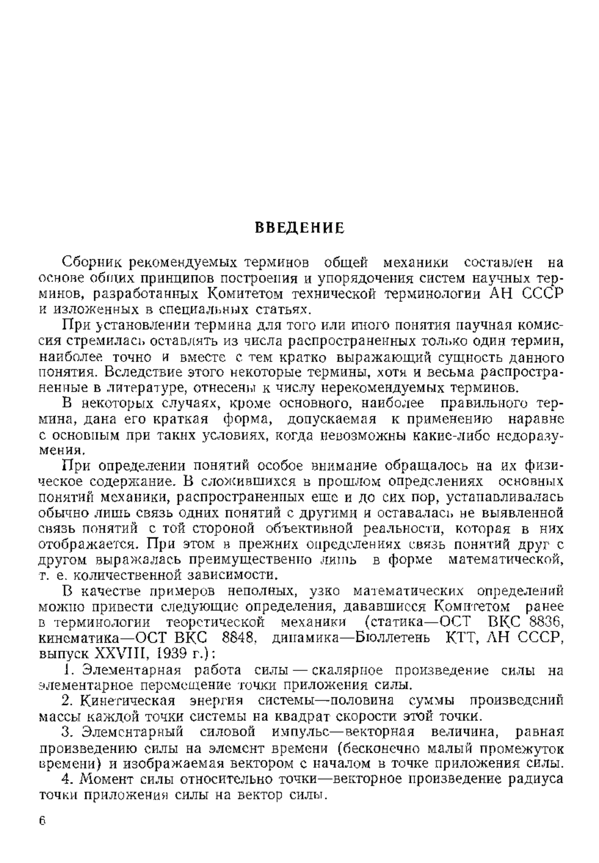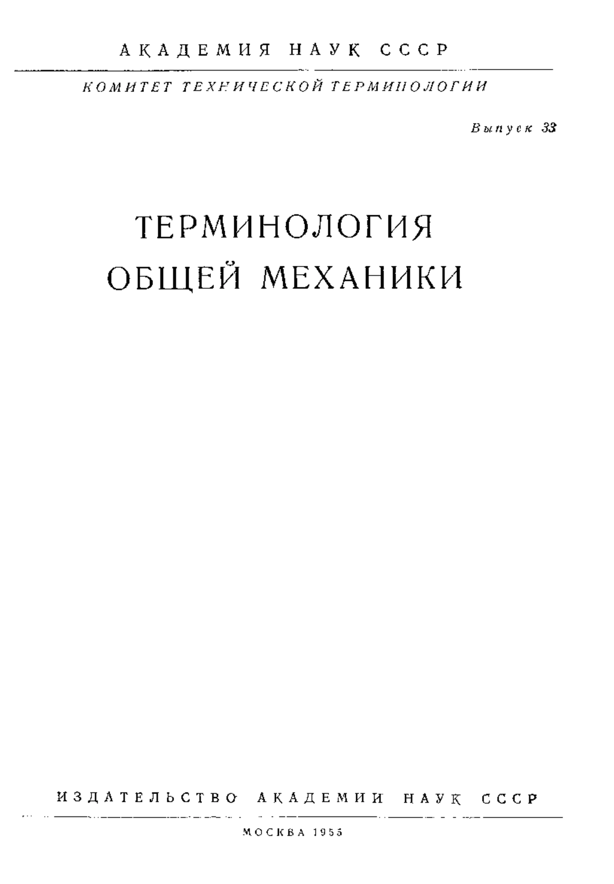 В выпуске 63 Бюллетеня Комитета технической терминологии АН СССР был опубликован для широкого обсуждения проект терминологии и буквенных обозначений общей механики. На основании этого проекта и анализа полученных от 99 научных организаций замечаний Комитет разработал терминологию и буквенные обозначения общей механики, рекомендуемые для применения в научно-технической и учебной литературе, в промышленных стандартах, заводской документации и т. д.