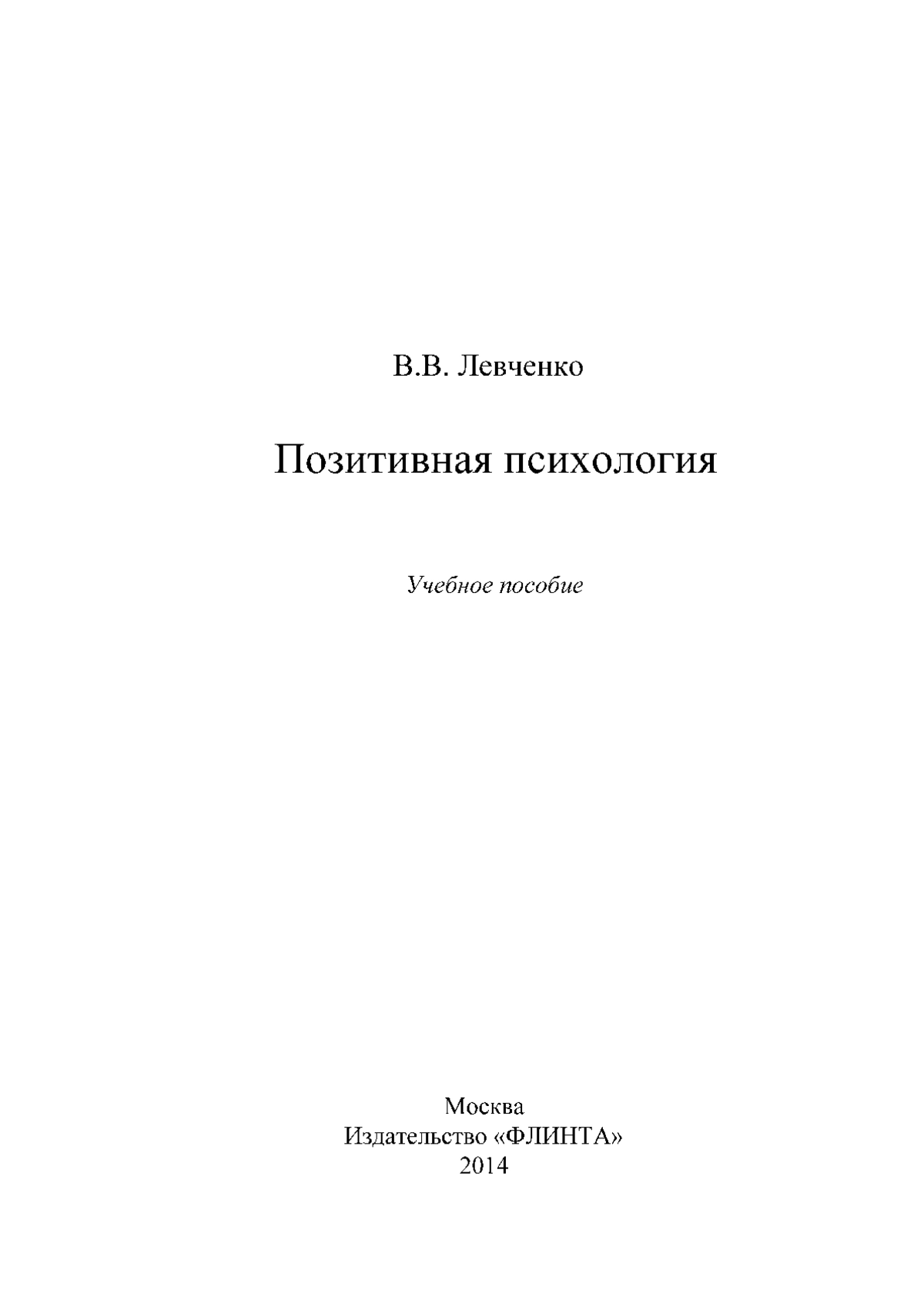 Левченко В.В. Позитивная психология [Электронный ресурс] : учеб. пособие / В.В. Левченко. — М. : ФЛИНТА, 2014. — 258 с.