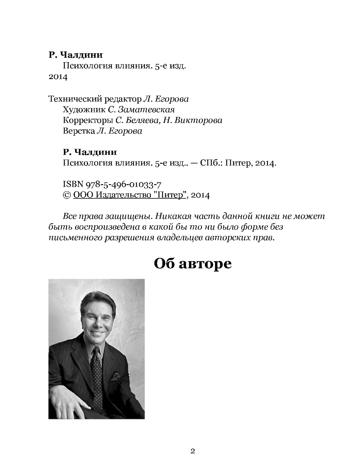 Психология влияния. 5-е изд.. — СПб.: Питер, 2014.