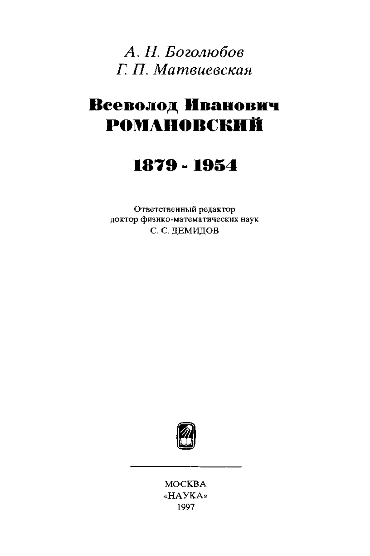 Всеволод Иванович Романовский. 1879—1954. — М.: Наука, 1997.